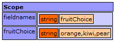 That works fine, but it turns out I've been doing extra work for nothing. If we use the form code in Example 1 and submit it with Orange, Kiwi and Pear checked, a dump of the form scope shows the following: